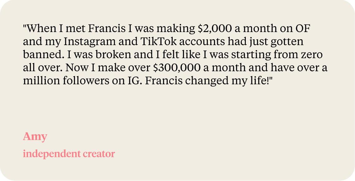 I’ve been in your shoes. Organic social media is one of the most difficult aspects of OFM, and it’s more competitive than ever before. Pumping out TikTok dances and copying the same trends as every other OF creator is simply not good enough in today’s social media landscape.
